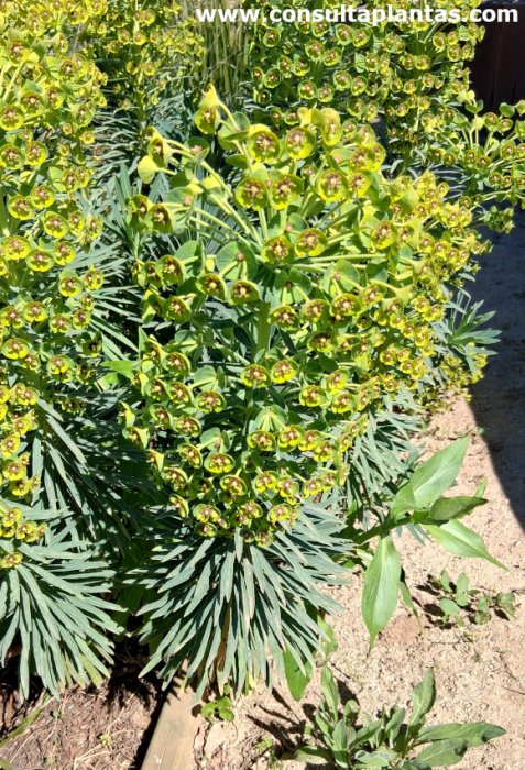 Care of the shrub Euphorbia characias or Mediterranean spurge |
