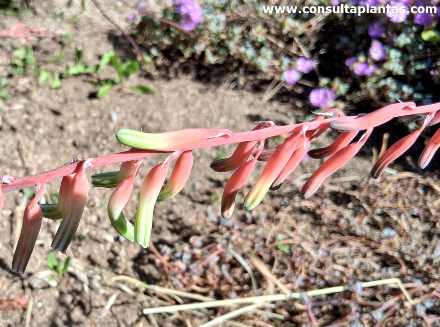 Unas 20 especies de plantas suculentas nativas del sur de África forman el género Gasteria de la familia de las Xanthorrhoeaceae. Algunas especies son: Gasteria carinata, Gasteria excelsa, Gasteria bicolor, Gasteria disticha, Gasteria liliputana, Gasteria angustifolia. Recibe el sinónimo científico de Gasteria verrucosa. La Gasteria carinata es una planta suculenta de crecimiento más bien lento que no suele superar los 20 cm de altura pero se extiende a lo ancho formando colonias. Las hojas tienen forma triangular-lanceolada, el márgen coriáceo y son de color verde oscuro con manchas claras. Produce tallos florales con flores tubulares de color rosa anaranjado. Puede florecer desde finales de invierno hasta inicios de verno. Se utiliza en rocallas, en borduras, en macetas colgantes y en patios, terrazas y en interiores junto a una ventana. La Gasteria carinata prefiere una exposición de semisombra o de sombra pues el sol directo hace que pierdan el color verde y se vuelvan rojizas además de producirles alguna quemadura. Es capaz de soportar alguna helada débil si el terreno permanece seco. Es importante que el suelo drene muy bien y no retenga agua para lo cual utilizaremos una mezcla, a partes iguales, de arena gruesa y mantillo de hojas o un sustrato comercial para cactus y suculentas con un poco más de arena gruesa. Regar regularmente en primavera y verano esperando a que al menos se haya secado la parte superficial del suelo. A partir de otoño reducir los riegos hasta que en invierno sólo reguemos una vez al mes como máximo. Agradecerá un ligero abonado con compost en otoño y un aporte de fertilizante mineral para cactus y suculentas a principios de la primavera. La Gasteria carinata no precisa de poda pero pueden eliminarse los tallos florales marchitos. El mayor peligro para la Gasteria verrucosa es el exceso de riego o de humedad ambiental que puede pudrirlas. Aunque puede propagarse a partir de semillas sembradas en semillero en primavera o en verano es más rápido hacerlo a partir de los hijuelos que suele producir. |