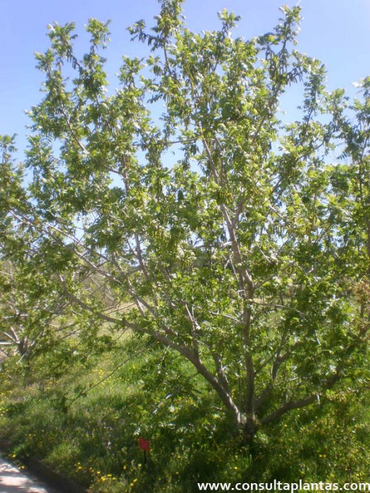 The Juglans genus, family Juglandaceae, is made up of about 20 species of trees with cosmopolitan distribution. Some species are: Juglans regia, Juglans australis, Juglans ailantifolia, Juglans nigra, Juglans cinerea. Common names: California black walnut, Southern California Walnut. This species is native from California. California black walnut is a small tree or a large deciduous shrub with a rounded shape that reaches 9 meters (29.52 feet) in height. The large pinnate leaves have 11-19 lanceolate leaflets with serrated edges and are dark green. The flowers, yellowish green, are not of decorative interest. The fruits are small nuts with a thick shell. Southern California Walnut is used to form screens, as isolated specimens and planted next to water courses. Juglans californica can grow in full sun and semi-shade exposures. It resists frosts up to -6 ºC (20 ºF). California black walnut grows in any type of soil but prefers good drainage. Southern California Walnut resists drought well so it needs moderate watering waiting for the substrate to dry; in summer, abundant watering once a month is sufficient. Fertilizer is not necessary. Juglans californica can be lightly pruned at the end of winter to maintain a compact shape. California black walnut is a plant resistant to the usual pests and diseases. Southern California Walnut propagates from seeds sown in spring. |