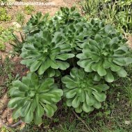 The genus Aeonium, of the Crassulaceae family, comprises 75 species of succulent plants native to the Canary Islands, Madeira, East Africa and Morocco. Some species are: Aeonium undulatum, Aeonium spathulatum, Aeonium mascaense, Aeonium canariense, Aeonium arboreum, Aeonium glutinosum, Aeonium percarneum, Aeonium tabulaeforme, Aeonium hierrense, Aeonium virgineum. Common name: Stalked Aeonium. This species is native to Canary Islands. They are bushy succulent plants (up to 90 cm/2.95 feet high) that do not branch and develop large and beautiful rosettes up to 30 cm (1 feet) in diameter. The leaves are spatulate in shape, are longer than in other aeonium species, have cilia on the margin and are bright green; if they get a lot of sun, the edges of the leaves turn reddish. The flowers are yellow and appear in a spectacular pyramidal inflorescence. They can take years to bloom but then the plant dies. The main uses of these plants are: in pots, in groups of several specimens on edges or in the front of shrub groups and in rockeries and cactus and succulent gardens. They are ideal for Mediterranean coastal gardens. Aeonium undulatum can be cultivated in an exposure of full sun or in a half shade. If the summer is hot and dry it is better to place them in semi-shade (for example in Mediterranean climate). Although it could tolerate some sporadic frost of about -3 ºC (26.6 ºF) it is better that the thermometer does not drop below 5 ºC (41 ºF). The soil needs excellent drainage for which a commercial substrate for cacti and succulents can be used to which a little coarse sand will be added. They can live in poor, sandy soil. The pot transplant or planting in its final place is done in early spring, separating the specimens by about 30 cm (11.81"). Water moderately, bearing in mind that they tolerate drought well. It is important to wait until the soil has dried and water very little in winter (once a month). Stalked Aeonium does not need pruning or fertilization. Aeonium undulatum is resistant to the usual pests but are sensitive to excess moisture. Stalked Aeonium is usually propagated from seeds collected from the same plant since it dies after flowering. |