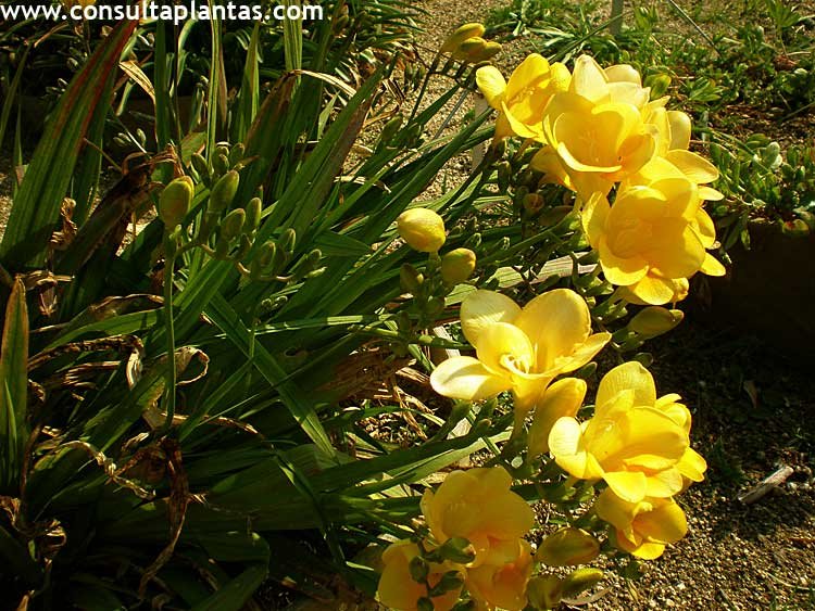 Care of the tuberous plant Freesia x hybrida or Freesia hybrid |
