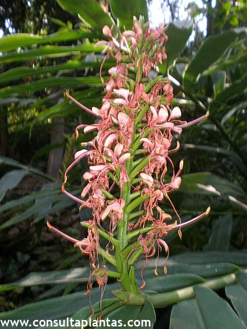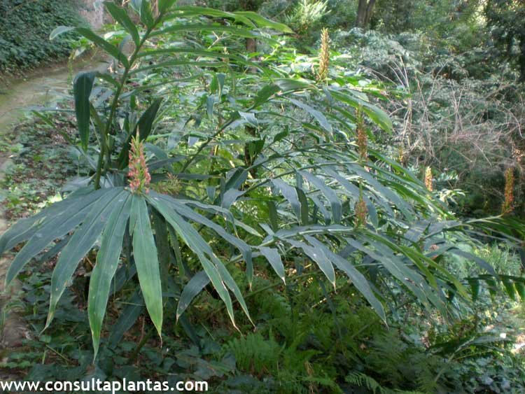 The genus Hedychium, family Zingiberaceae, includes about 80 species of rhizomatous plants native to the Himalayas and tropical Asia. Some species are: Hedychium coccineum, Hedychium gardnerianum, Hedychium flavescens, Hedychium coronarium, Hedychium gracile, Hedychium chrysoleucum, Hedychium aureum, Hedychium ellipticum. Common names: Scarlet Ginger lily, Red ginger lily, Orange ginger lily, Orange bottlebrush ginger. This species is native to China, India, the Himalayas and Indochina. They are herbaceous plants of erect bearing that reach 2 meters (6.56 feet) in height. The large lanceolate leaves are shiny green. The attractive, scented flowers appear on long terminal spikes and can be red, orange, or yellow. They bloom in summer. Scarlet Ginger lily is used in humid areas of the garden, on edges, in flowerbeds, along walls and in pots as indoor, greenhouse and terrace plants. Hedychium coccineum prefers a semi-shade exposure receiving direct sun in the early hours of the day or late in the afternoon; it can grow in direct sun if summer is not too hot. It does not resist temperatures below 5 ºC (41 ºF). The soil can be normal, well-drained garden soil that contains plenty of organic matter. Water frequently throughout the year, especially in summer, and reduce watering in winter, preventing the substrate from drying out completely. Red ginger lily does not resist drought. Fertilize with mineral fertilizer every 15 days in summer and with compost at the end of winter. Excess watering (never flooding) can cause fungal diseases. If Hedychium coccineum is grown indoors or in a greenhouse, it can be attacked by aphids and mites if the ventilation is not adequate. Orange ginger lily is propagated from seeds sown in spring in the greenhouse and by division also in spring. |