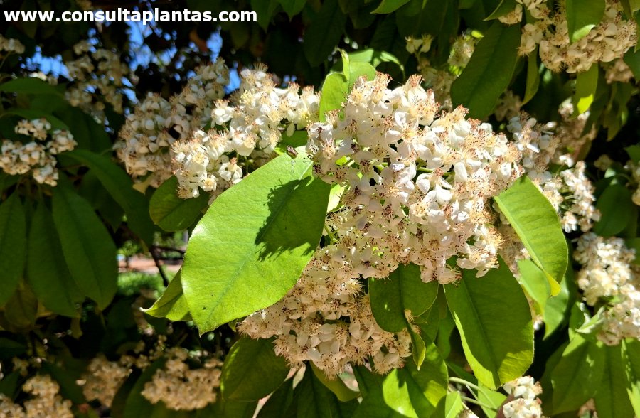 The genus Photinia, family Rosaceae, includes 40 species of shrubs and trees native to East and South Asia. Some species are: Photinia nussia, Photinia serrulata, Photinia x fraseri (hybrid), Photinia villosa, Photinia glabra, Photinia prunifolia, Photinia davidiana. Scientific synonyms: Stranvaesia nussia, Pyrus nussia. This species is distributed throughout China, India, Tibet, Nepal, Southeast Asia, and the Philippines. They are trees or large evergreen shrubs that reach 10 meters (32.8 feet) in height. The leathery obovate-lanceolate leaves are bright green; young leaves are bronze. They produce clusters with small white flowers. They bloom in summer. The red or orange fruits are quite decorative. Stranvaesia nussia is used as isolated specimens, to form shrubby groups and informal hedges. Photinia nussia grows in full sun and light shade exposures. Frost resistant up to -6 ºC (21.2 ºF). The soil can be normal, well-drained garden soil with coarse sand and plenty of organic matter. Water regularly so that the substrate does not dry out completely, although Photinia nussia resists a few days of drought. Fertilize with compost or manure in the fall. Prune lightly at the end of winter if used as a hedge or if you want to keep it compact. Photinia nussia is a plant resistant to the usual pests and diseases. Stranvaesia nussia is propagated by cuttings (use rooting hormones) and from seeds sown in spring with previous stratification. |
