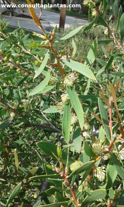 El género Hakea, familia Proteaceae, está compuesto por unas 150 especies de pequeños árboles y arbustos procedentes de Australia. Algunas especies son: Hakea nitida, Hakea bucculenta, Hakea cristata, Hakea laurina, Hakea aculeata, Hakea prostrata, Hakea recurva, Hakea leucoptera, Hakea denticulata, Hakea orthorrhyncha, Hakea petiolaris. Recibe el nombres vulgar de Hakea rana (del inglés "Frog hakea") por la forma y textura de los frutos. Esta especie procede de Australia Occidental. La Hakea nitida es un arbusto o arbolito perennifolio de porte erecto o extendido que alcanza 3 metros de altura. Las gruesas hojas son de color verde pálido brillante y miden hasta 10 cm de longitud. Las flores son de color blanco cremoso y aparecen en densos racimos en las axilas de las hojas. Florece en verano. Los frutos son vainas que tienen una textura similar a la piel de los sapos. Se utiliza como ejemplar aislado, en grupos arbustivos, en rocallas y en pendientes secas y soleadas. Es ideal para jardines costeros mediterráneos. La Hakea nitida crece en exposiciones de pleno sol y de semisombra y en climas mediterráneos. Resiste heladas ligeras y ocasionales. Crece en cualquier tipo de suelo bien drenado: arenoso, pedregoso o ligeramente arcilloso. Es una planta resistente a la sequía que necesita riego moderado esperando a que se seque por completo el sustrato. Abonar con un poco de compost a finales de invierno. Tolera una ligera poda tras la floración para mantener un porte compacto. La Hakea nitida es una planta resistente a las habituales plagas y enfermedades pero sensible al exceso de humedad en las raíces. Se propaga a partir de semillas sembradas en primavera o en otoño en un sustrato arenoso ligeramente húmedo. |