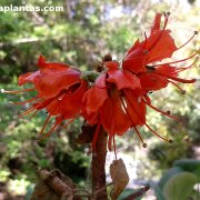 El género Greyia, familia Melianthaceae, incluye 3 especies de arbustos y arbolitos originarios de Sudáfrica. Las especies son: Greyia flanaganii, Greyia sutherlandii, Greyia radlkoferi. Recibe el nombre vulgar de Greyia de Flanagan. Esta especie es originaria del sureste de Sudáfrica. La Greyia flanaganii es un arbusto o arbolito perennofolio muy ramificado que alcanza 3 metros de altura. Las hojas redondeadas y aterciopeladas tienen el haz de color verde grisáceo o verde oscuro y el envés de color verde pálido y muy piloso; los márgenes están festoneados y dentados. Las vistosas flores rojas en forma de campana aparecen en racimos laxos. Florece en primavera. Esta planta de crecimiento lento se utiliza como ejemplar aislado y en grupos arbustivos. Es ideal para jardines pequeños. Atrae a pájaros y abejas. La Greyia flanaganii necesita una exposición de pleno sol. Resiste heladas hasta -10ºC. El suelo puede ser una tierra normal de jardín bien drenada con arena gruesa; el buen drenaje es muy importante. Regar moderadamente esperando a que el sustrato se haya secado. Resiste bien la sequía. Abonar en otoño con un poco de compost. Puede podarse tras la floración para mantener un porte compacto. La Greyia flanaganii no suele presentar graves problemas de plagas y enfermedades. La Greyia de Flanagan se propaga a partir de semillas sembras en primavera y mediante esquejes de madera blanda. |
